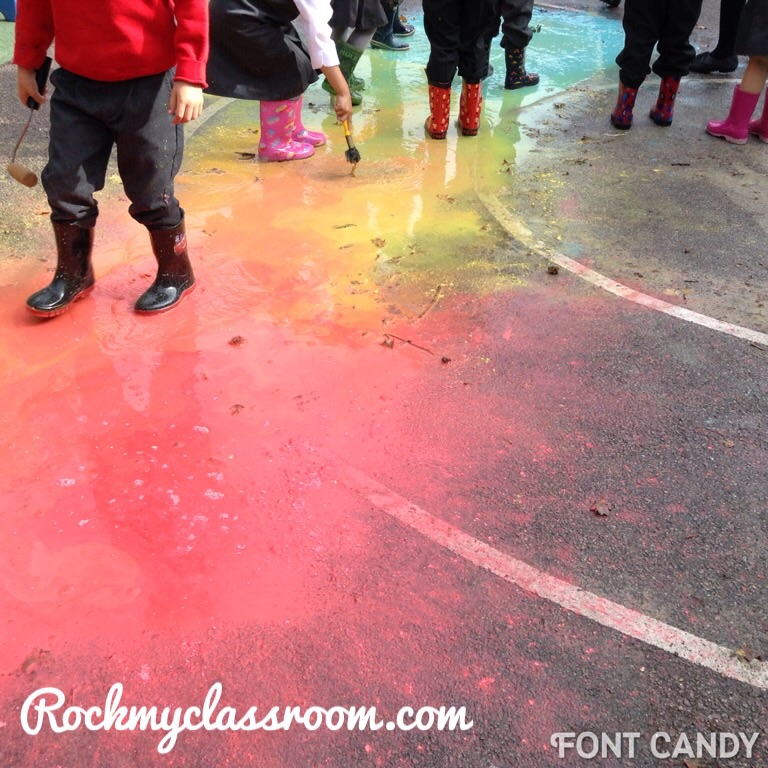 The following week I set this funky fingers activity up in a tuff spot outside with green gelibaff. The children were thrilled!